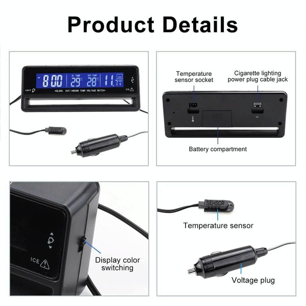 Car Digital Display Clock Luminous Electronic Thermometer Voltmeter(TS-7010V)