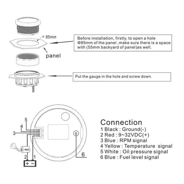 2. Water temperature/oil temperature sensor disconnect alarm, high temperature alarm