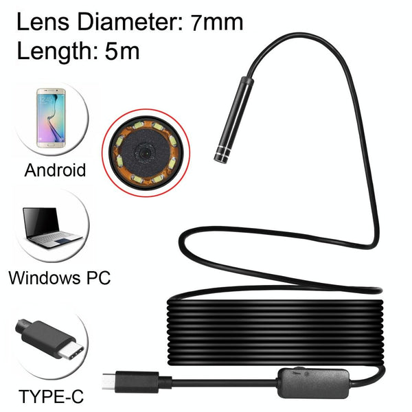 AN97 USB-C / Type-C Endoscope Waterproof IP67 Tube Inspection Camera with 8 LED & USB Adapter, Length: 5m, Lens Diameter: 7mm