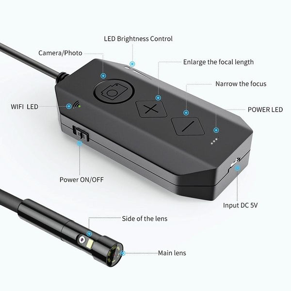 Y17 5MP 7.9mm Dual-lens HD Autofocus WiFi Industrial Digital Endoscope Zoomable Snake Camera, Cable Length:3.5m Hard Cable(Black)