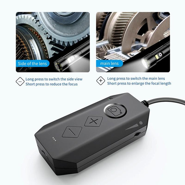 1. Dual-lens dual-screen display: This borescope can switch between the front camera and the side camera to view the situation at different angles