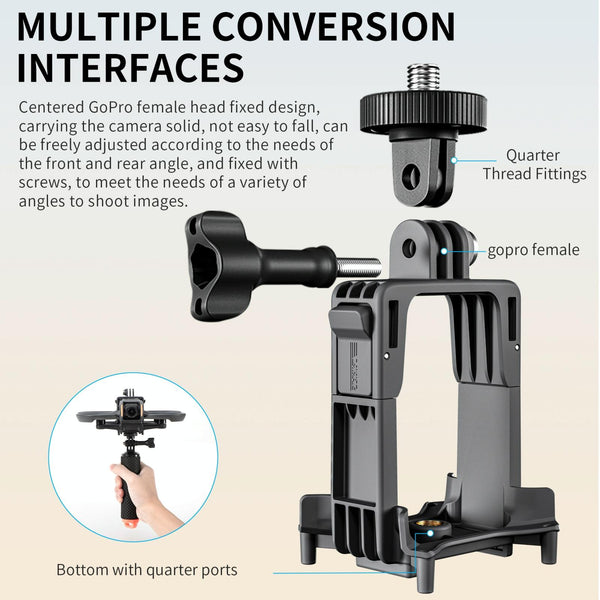 2. Wide range of general applications. The top of the expansion piece is connected through the (for GoPro) female connector, which is suitable for GoPro Hero series, DJI Action series, Insta360 Ace series, and a variety of sports cameras. It can basically meet the use of most of your sports cameras and solve your compatibility problems;