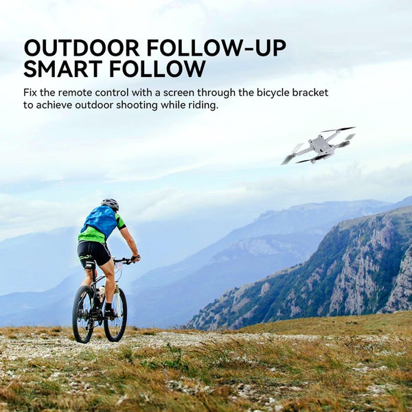 7. Outdoor follow-up shooting, intelligent follow-up: Fix the remote controller with screen through the bicycle bracket to realize shooting while riding outdoors