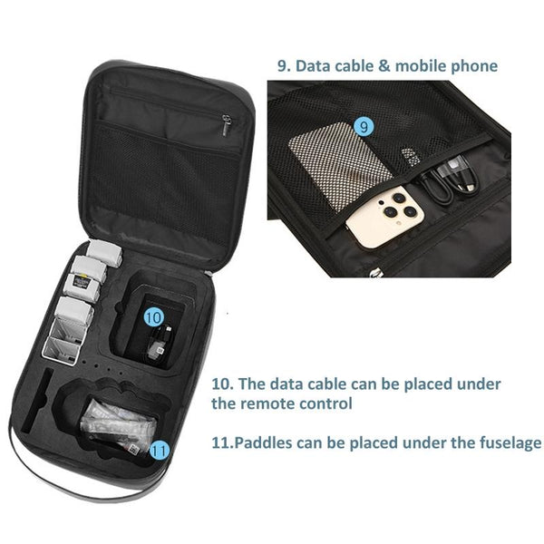 7. Capacity: Can hold the body, RC 2 or RC N2 remote control, original battery manager (the one from the subsidiary factory cannot be accommodated), 4 batteries (including 1 body), filter box, battery manager, and propeller data Line, rocker, etc.