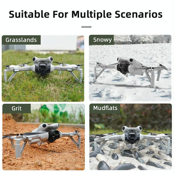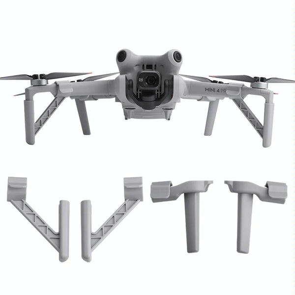 1. Heightened landing gear for Mini 4 Pro, effectively increasing the fuselage by 14mm to prevent ground debris from contaminating the fuselage and sensors during takeoff and landing.