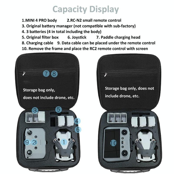 4. Capacity: can store the body, RC 2 or RC N2 remote control, original battery manager (not compatible with the sub-factory), 3 batteries (4 in total with the body), original filter box, rocker, paddles , charging head, data cable, etc.