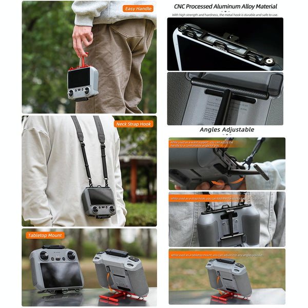 For DJI RC 2 / 1 Sunnylife ZJ764 Controller Handle Waist Support Tabletop Mount Neck Strap Hook Hanger Bracket (Black)
