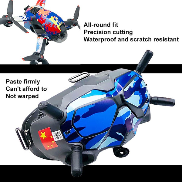 FPV-TZ-SF 4 in 1 Waterproof Anti-Scratch Decal Skin Wrap Stickers Personalized Film Kits for DJI FPV Drone & Goggles V2 & Remote Control & Rocker(Camouflage Blue)