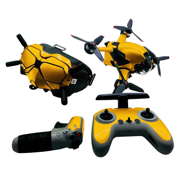 FPV-TZ-SF 4 in 1 Waterproof Anti-Scratch Decal Skin Wrap Stickers Personalized Film Kits for DJI FPV Drone & Goggles V2 & Remote Control & Rocker(Fluorescent Gold)