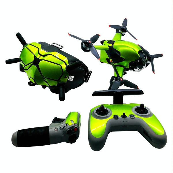 FPV-TZ-SF 4 in 1 Waterproof Anti-Scratch Decal Skin Wrap Stickers Personalized Film Kits for DJI FPV Drone & Goggles V2 & Remote Control & Rocker(Fluorescent Green)