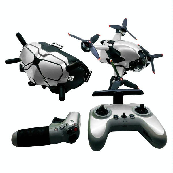 FPV-TZ-SF 4 in 1 Waterproof Anti-Scratch Decal Skin Wrap Stickers Personalized Film Kits for DJI FPV Drone & Goggles V2 & Remote Control & Rocker(Fluorescent Silver)