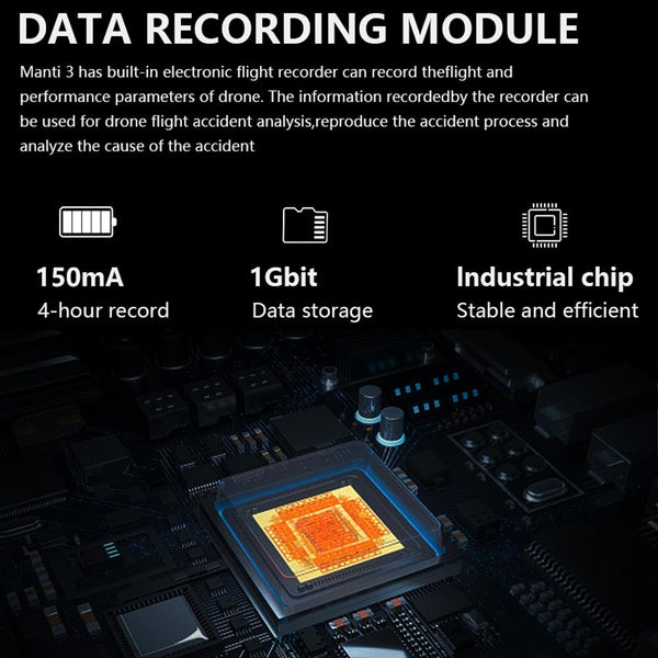 2. Manti 3 Plus has a built-in electronic flight recorder, which can record UAV flight and performance parameters. The information recorded by the recorder can be used for UAV flight accident analysis, reproduce the accident process, and analyze the cause of the accident concretely (built-in 150mm An battery, working time 4 hours, 1GB data storage)