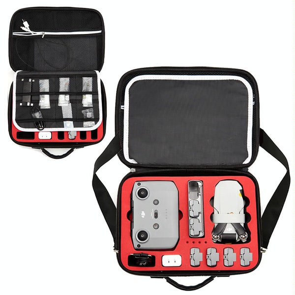 Multi-function PU Shoulder Storage Bag Suitcase with Baffle For DJI Mavic Mini 2(Red Liner)