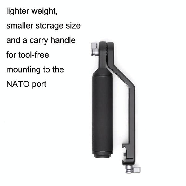 1. Lighter weight, smaller storage size and a carry handle for tool-free mounting to the NATO port