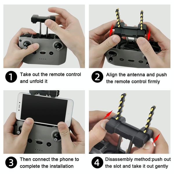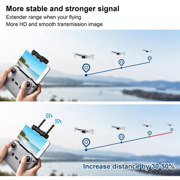 1. Using the principle of Yagi antenna, formulate Mavic series universal booster, enhance the antenna model, under the same signal interference strength of the flight environment, the distance of the aircraft can be increased by 50-500 meters