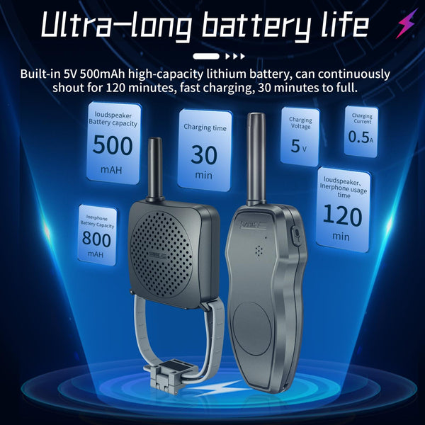 4. Long battery life, built-in 5V 500mAh large-capacity lithium battery, can continuously shout for 120 minutes, fast charging, can be fully charged in 30 minutes.