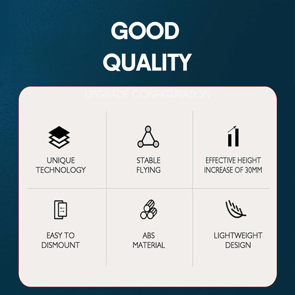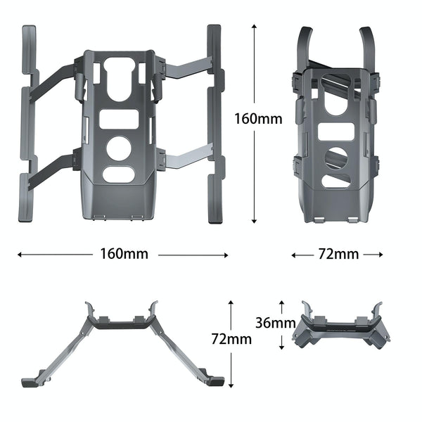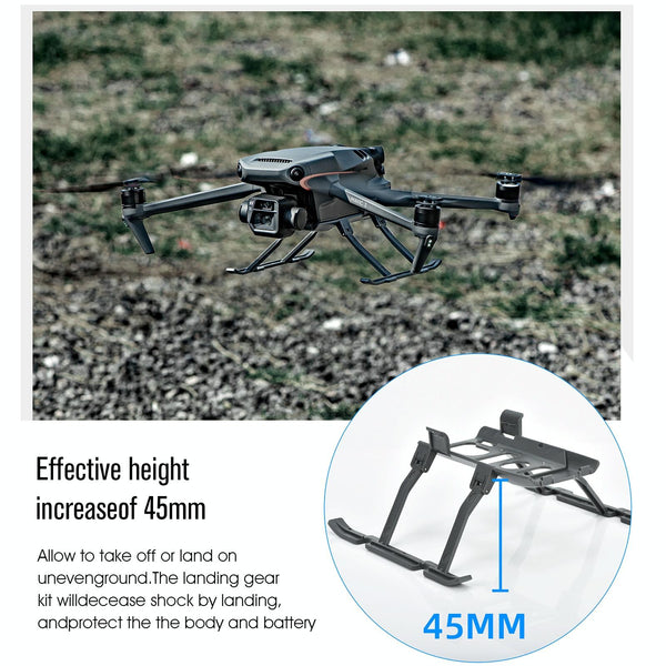 2. The height of the fuselage is effectively increased by 45mm, which can prevent the ground debris from contaminating the fuselage or damaging the gimbal when taking off and landing the drone, and can still take off and land on uneven ground;