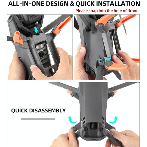 2. Effective 42mm height increase, increase the spacing between the fuselage and the ground, effectively prevent ground debris damage or dirty fuselage, sensors, etc. during takeoff and landing