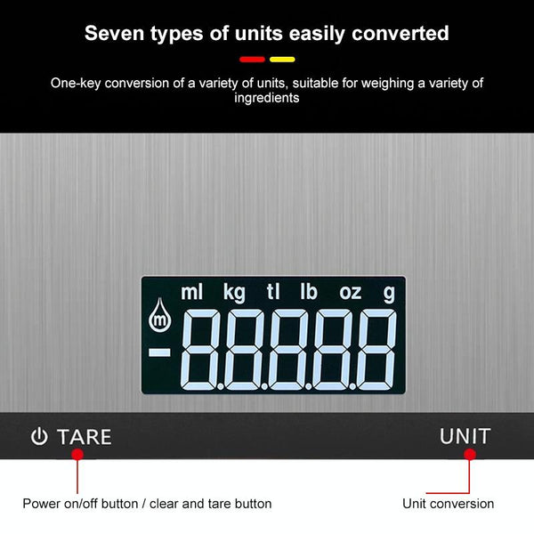 5. Weight unit: g, oz, lb, tl, kg, water, ml, milk, ml