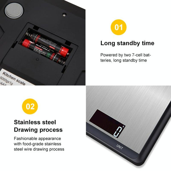 5kg/1g Stainless Steel Kitchen Scale Household Food Electronic Scale(White)