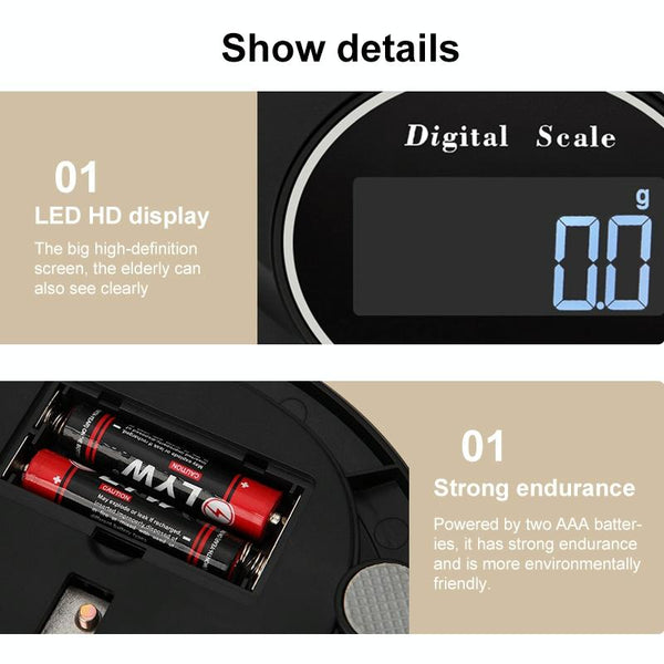 1. Kitchen scale unit: g, oz, lb, tl, kg, water ml, milk ml