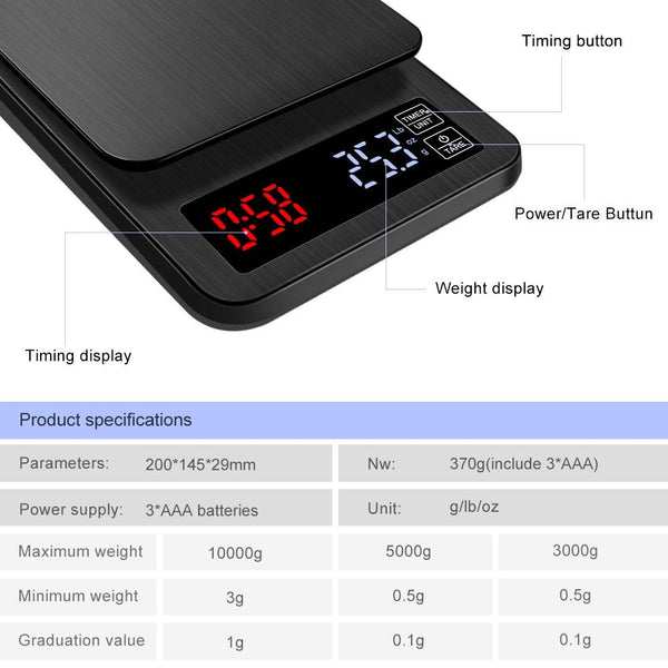 Household Hand-Pushed Coffee Scale USB-Powered Smart Kitchen Scale With Timing, Specification: 3kg/0.1g