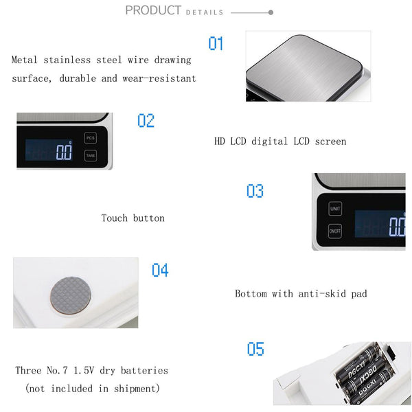 Stainless Steel Food Baking Scale Small Bench Scale Kitchen Electronic Scale English 5kg/1g