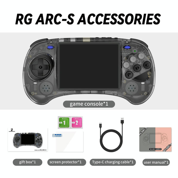 ANBERNIC RG ARC-S Handheld Game Console 4-Inch IPS Screen Linux System Portable Video Arcade 128G(Transparent Black)