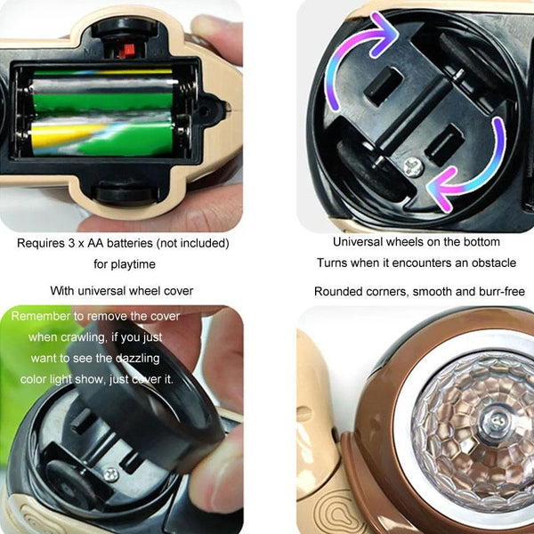 5. Universal walking, encounter obstacles will automatically turn, rotating light ball, flashing lights, cheerful music