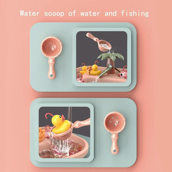 Play House Children Educational Electric Cycle Rotating Fishing Station Summer Water Game Toy Set, Colour: Green 6 Ducks