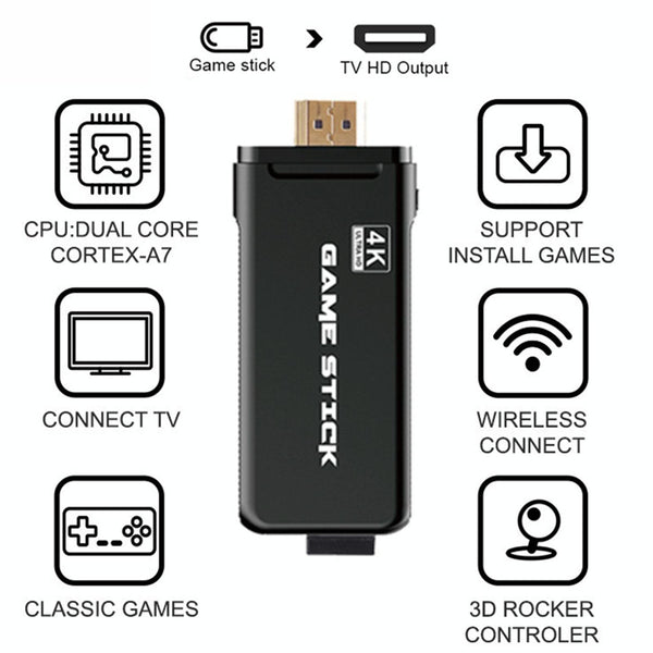 PS3000 32GB 4K Retro Game Stick with 2 Wireless Gamepads 3000+ Games Pre-installed