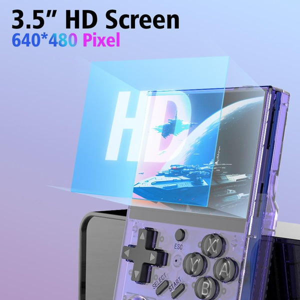 R35PLUS 3.5 Inch Handheld Game Console Built-in 64G 10,000+ Games(Transparent Black)