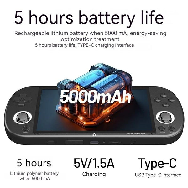 3. Large-capacity battery: Built-in 5000mAh lithium battery, you can enjoy up to 5 hours of gaming fun during long-distance travel.