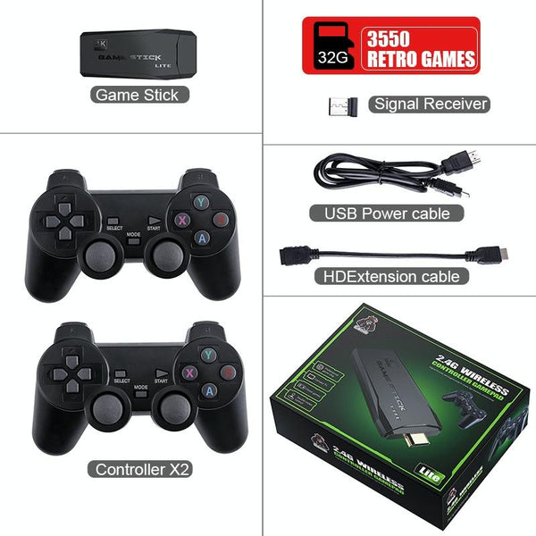 2. Just connect the game console to the interface of the TV, the USB power supply data cable into the host, the TV source is adjusted to the corresponding HD channel to display the game list screen on the TV, and the handle is placed in the battery to remote control and operate Convenience