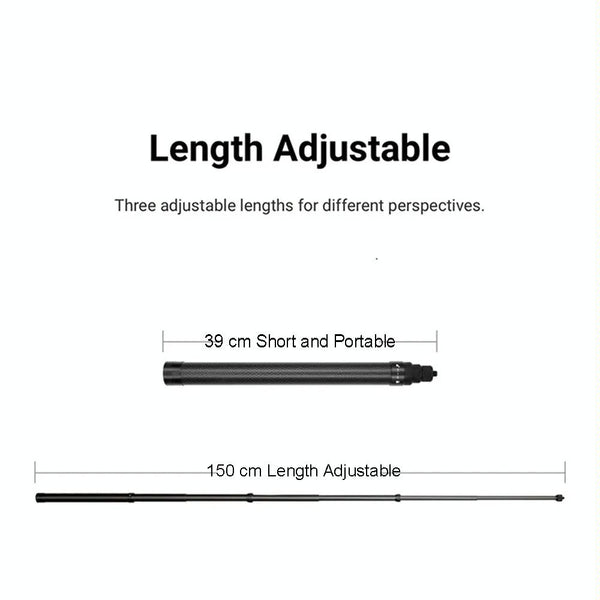 1.5m Carbon Fiber Extended Monopod Invisible Selfie Stick For Insta360/ DJI Action / GoPro / Xiao Yi Sports Camera