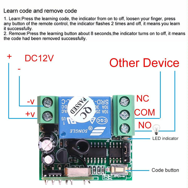 4. Learning code pairing: You can learn to pair with the same frequency remote control at will (dont worry if you lose the remote control during use, just buy the remote control and learn it, and you dont need to replace the whole set, which greatly saves the users cost).