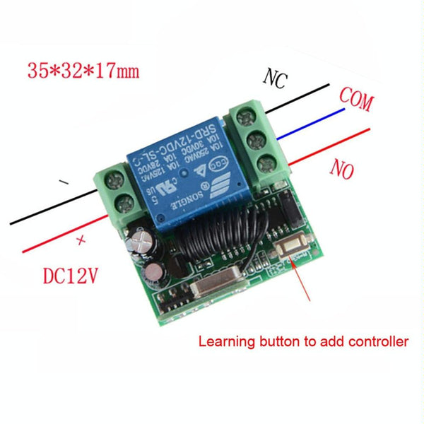 12V 10A RF Wireless Remote Control Switch 1CH Relay Receiver