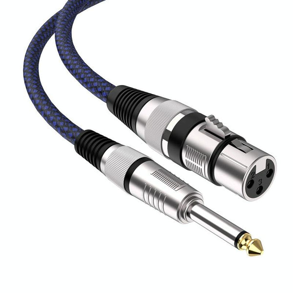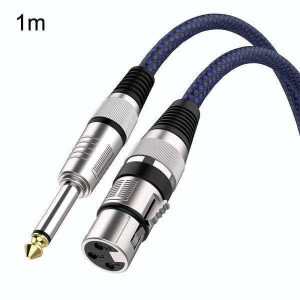 1m Blue and Black Net TRS 6.35mm Male To Caron Female Microphone XLR Balance Cable