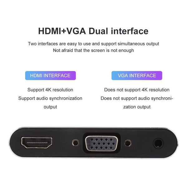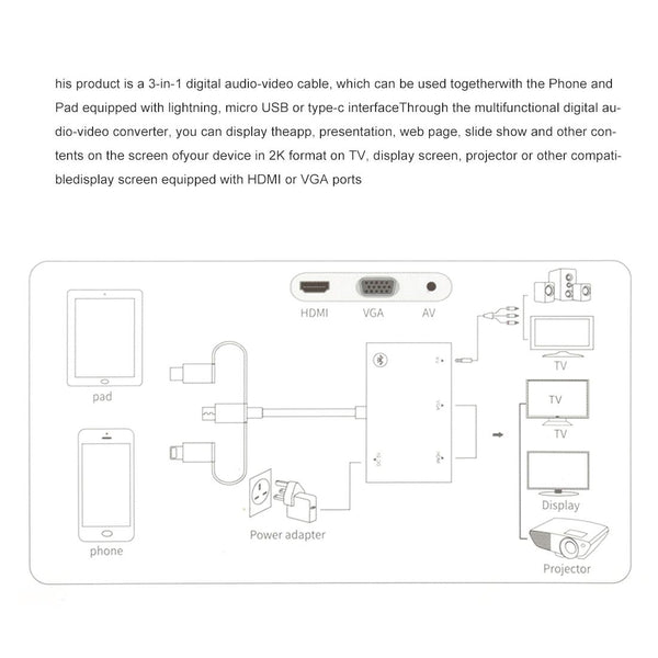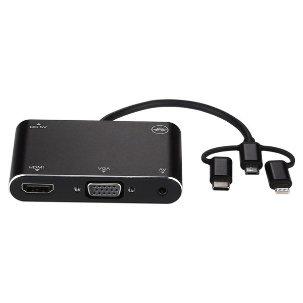 3 in 1 8 Pin + Micro USB + Type-C to AV + HDMI + VGA 15 Pin HD Screen Player Adapter Converter with Audio