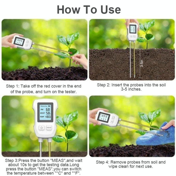 3 in 1 Digital Display Soil Detector, Soil Moisture, Temperature, PH