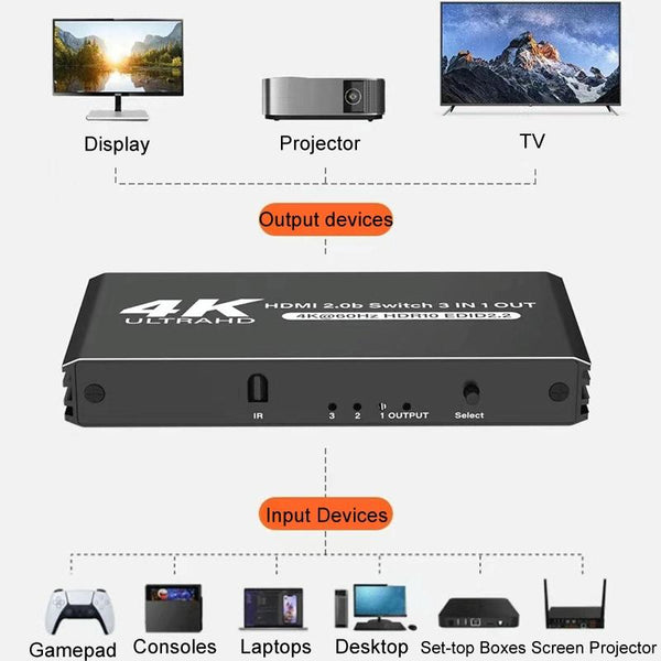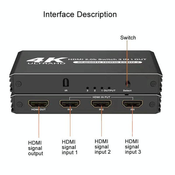 60Hz HDMI2.0 4K With Remote Control Switcher HDCP2.2 Version 3 Into 1 Out Video Converter