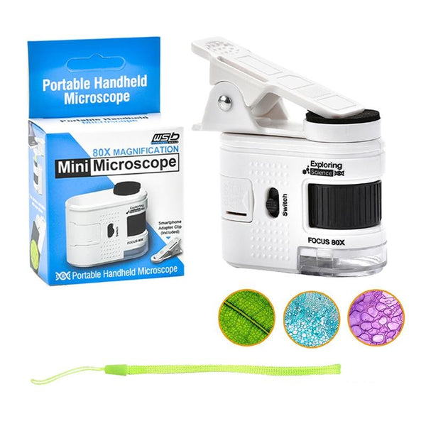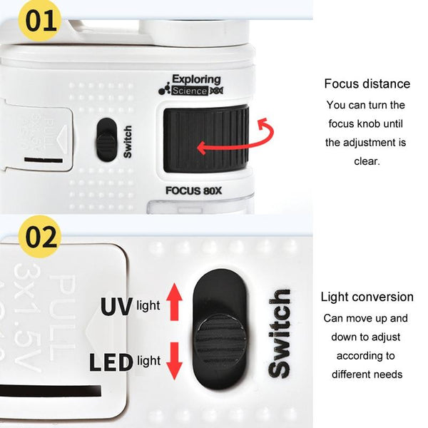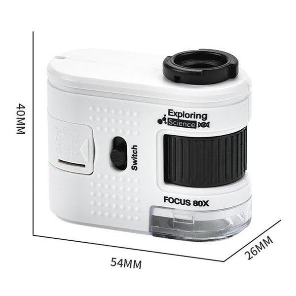 80X Children Mini Portable Microscope Student Antique Jewelry Identification Science Experiment Teaching Toy, Model: No Phone Clip