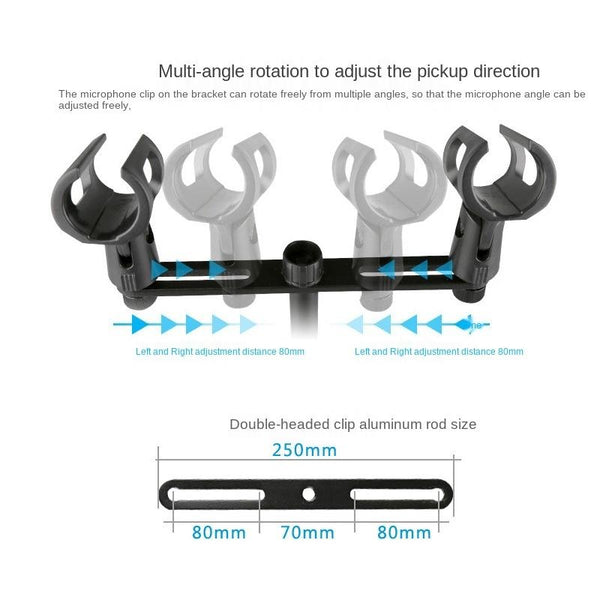 A16 Double-headedMicrophone Clip Aluminum Pole Microphone Accessories