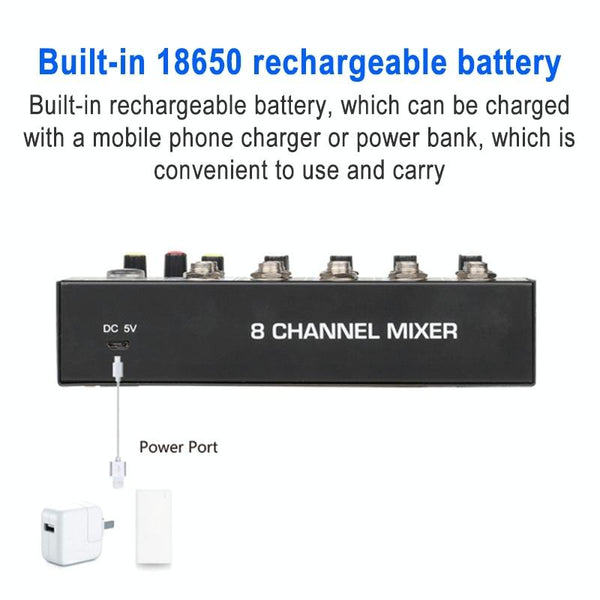 1. With 8 single-channel signal input/4 stereo channel input switching options, 8-channel signal input (4 stereo inputs can be converted), when only A channel is connected, it is mono, and the channels are simultaneously connected as stereo input.