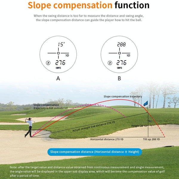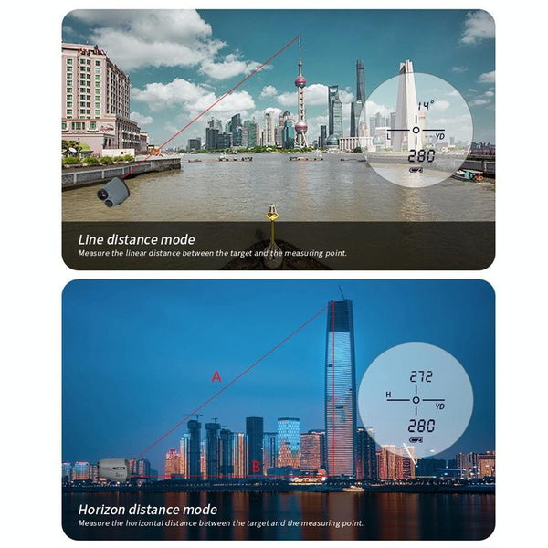 15. The operation is simple and convenient, quickly obtain the straight-line distance, horizontal distance, vertical distance, tilt angle, golf mode, height difference between two points
