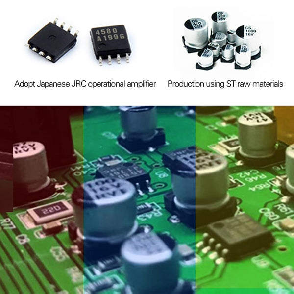 The product improves the sound amplification and reduces ground noise by controlling the signal, and it has large dynamic range without produce cracking. It controls output volume through a sensitive volume knob, the output of the headphone interface can drive 16-600 headsets, and uses AC9V transformer for power supply to ensure full power.