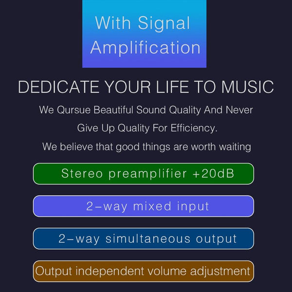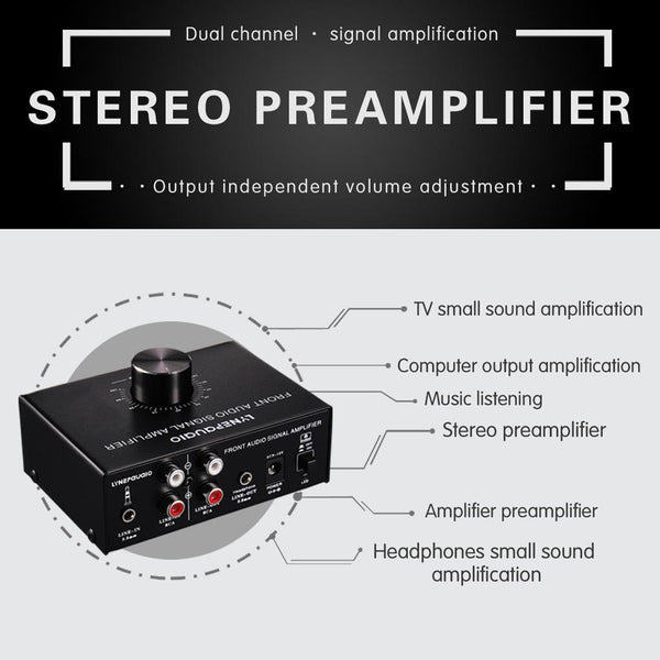 A powerful signal amplifier receiver or volume control, you may need a long line connecting TV audio and the receiver on the other side of the room to provide high gain through any line level signal source, allowing longer cable operation or requiring buffer to amplify the lower volume. You may use it between the line level signal source and power amplifier as a signal amplifier, 3.5mm + RCA port matches almost all product interfaces.