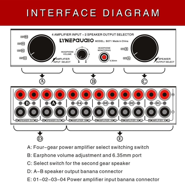 1 X 4 In 2 Out or 2 In 4 out Power Amplifier Speaker Select Switcher