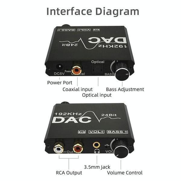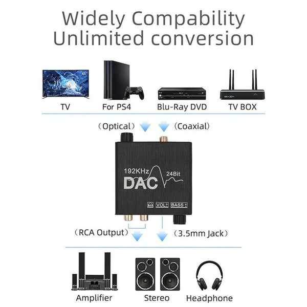 Digital To Analog Audio Converter Stereo Extractor DAC Amplifier Optical SPDIF 192Khz 24Bit