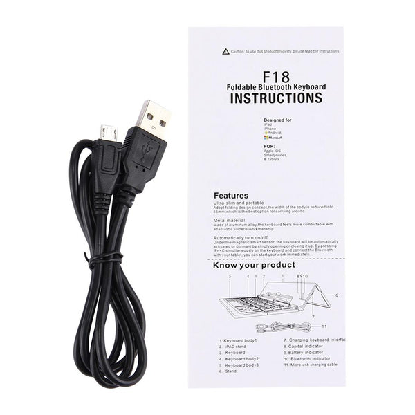 F18 Ultra-slim Rechargeable Foldable 58 Keys Bluetooth Wireless Keyboard with Holder (Grey)